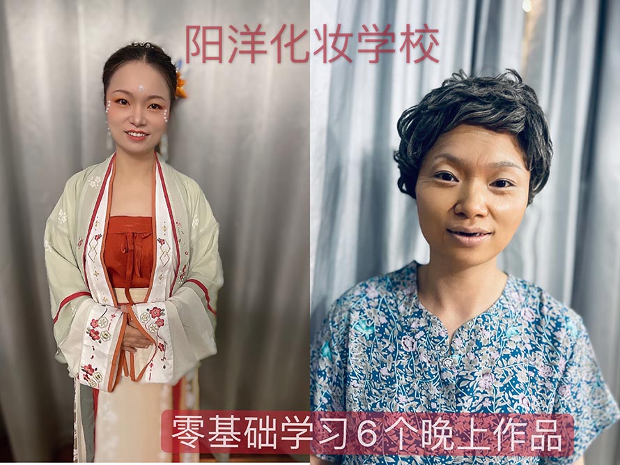 零基礎的錢同學,企業工作人歲,每天下班后趕過來上課,她說自己平時就喜歡穿漢服,但是不會化妝,經過6個晚上的學習,學會了化妝,整體妝搭上自己平時喜歡的漢服,絕配呀。20多歲的她,把自己化成了老老太太,她說珍惜我們最年輕,最美好的時光,學習化妝后,讓自己對妝容了解也越來越深了,自己今后每天都會化上美美的妝去上班。加油。(自己做自己的模特很棒哦)