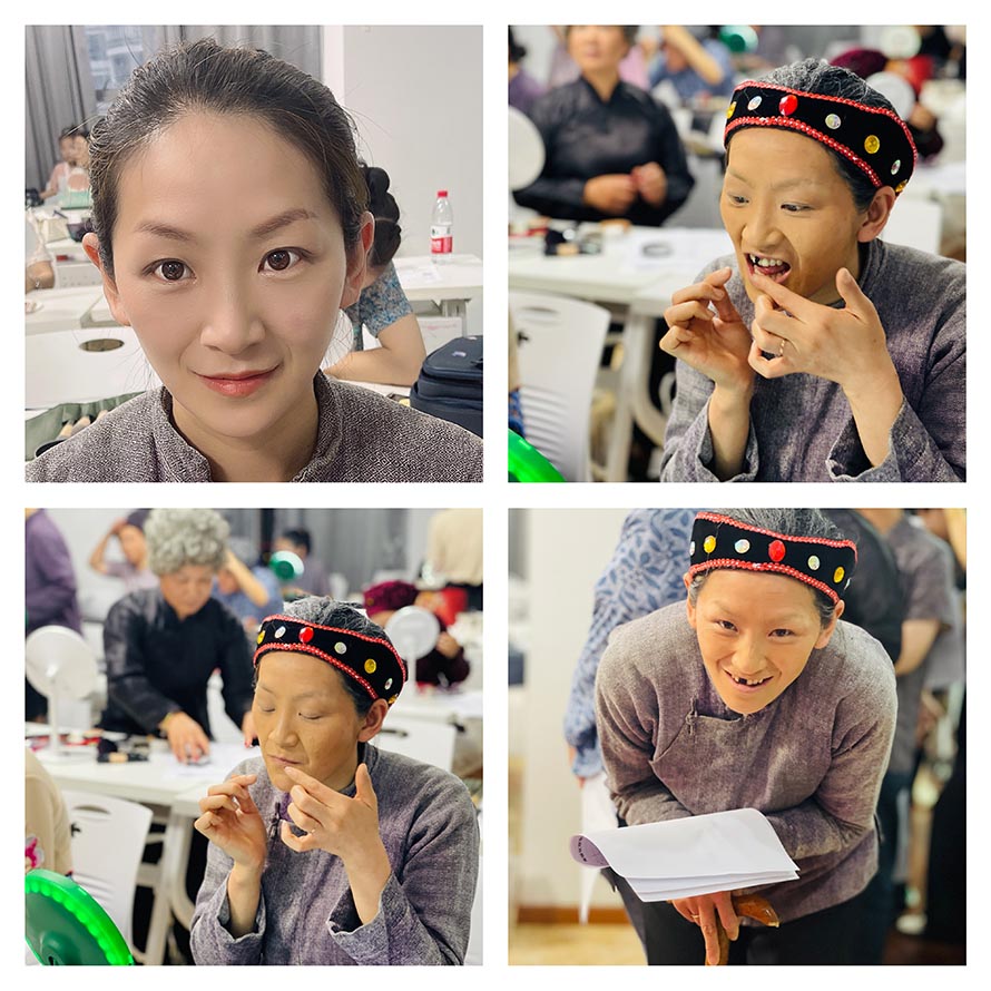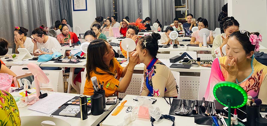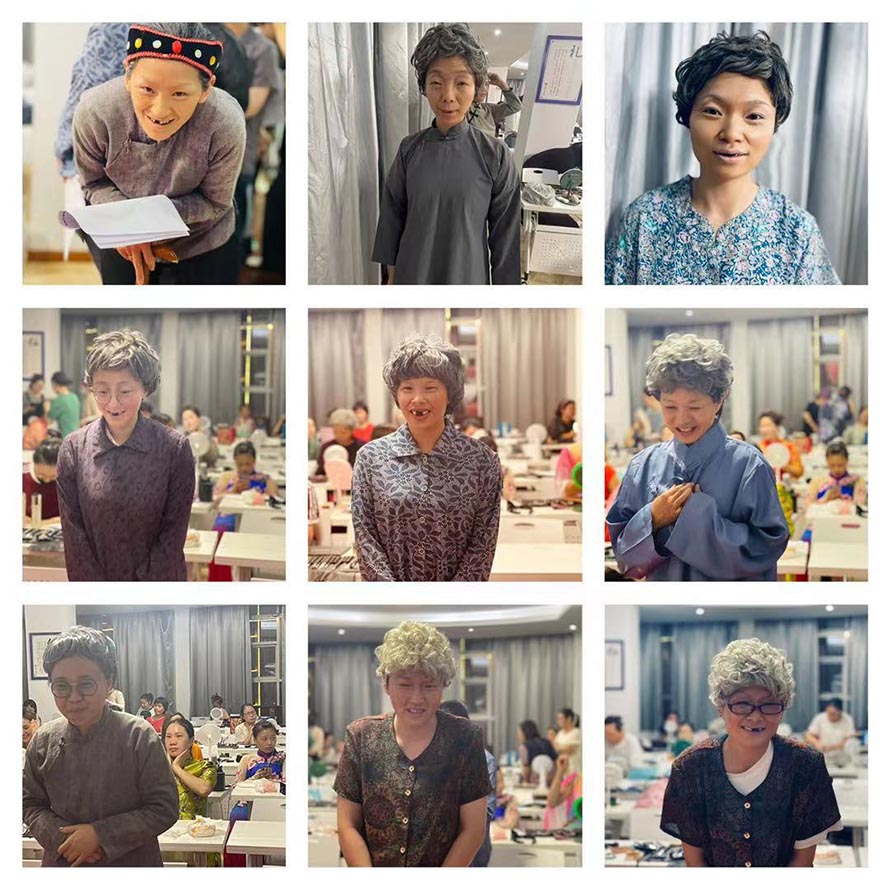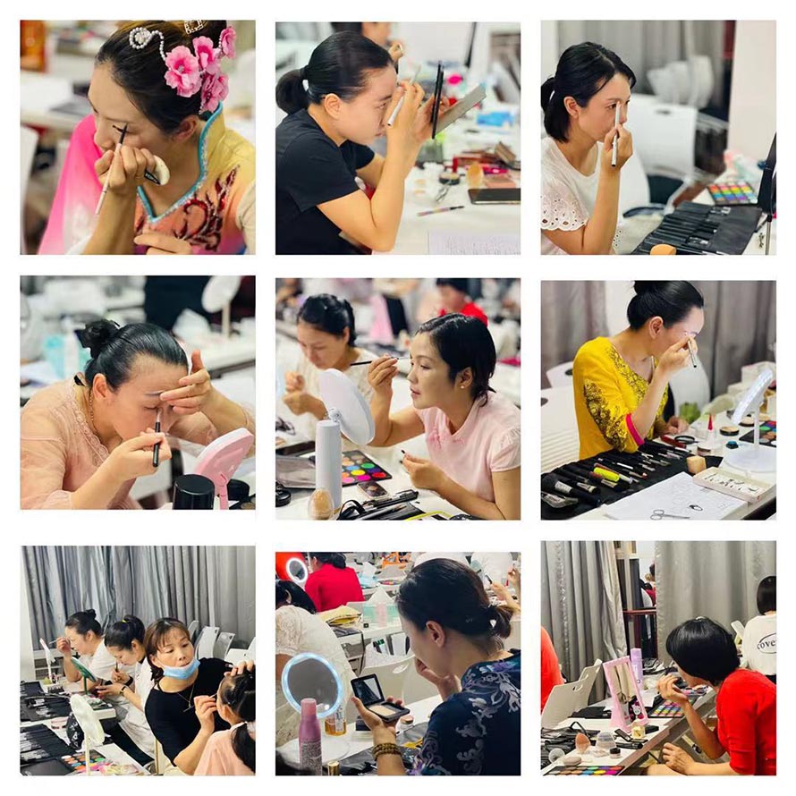 我們學習化妝,主要學習自我化妝,職業妝,前幾天學習自我化妝,后幾天學習舞臺妝,老年妝,人社局考試要求就是要考試舞臺妝和老年妝。(圖片是白石婦聯的負責人,也是零基礎的來學習,考試當天做了舞臺漢服妝+老年妝,零基礎的她,僅僅學習6個晚上,考試當天自己化自己,考評員夸她很棒哦