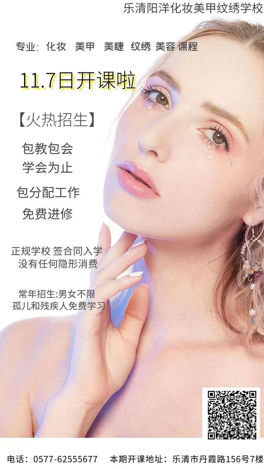 當前位置:樂清市陽洋職業技能培訓學校 » 學校新聞2021年11月開課時間表#樂清哪里有學化妝美甲紋繡美睫美容#溫州學化妝發布時間:2021-11-5 9:33:48 瀏覽次數:1958 |