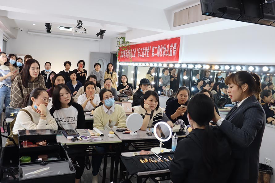 “課堂中的每節課,我們老師老師示范妝容,最基礎的修眉開始,如何打底,再畫眼影,畫眉,