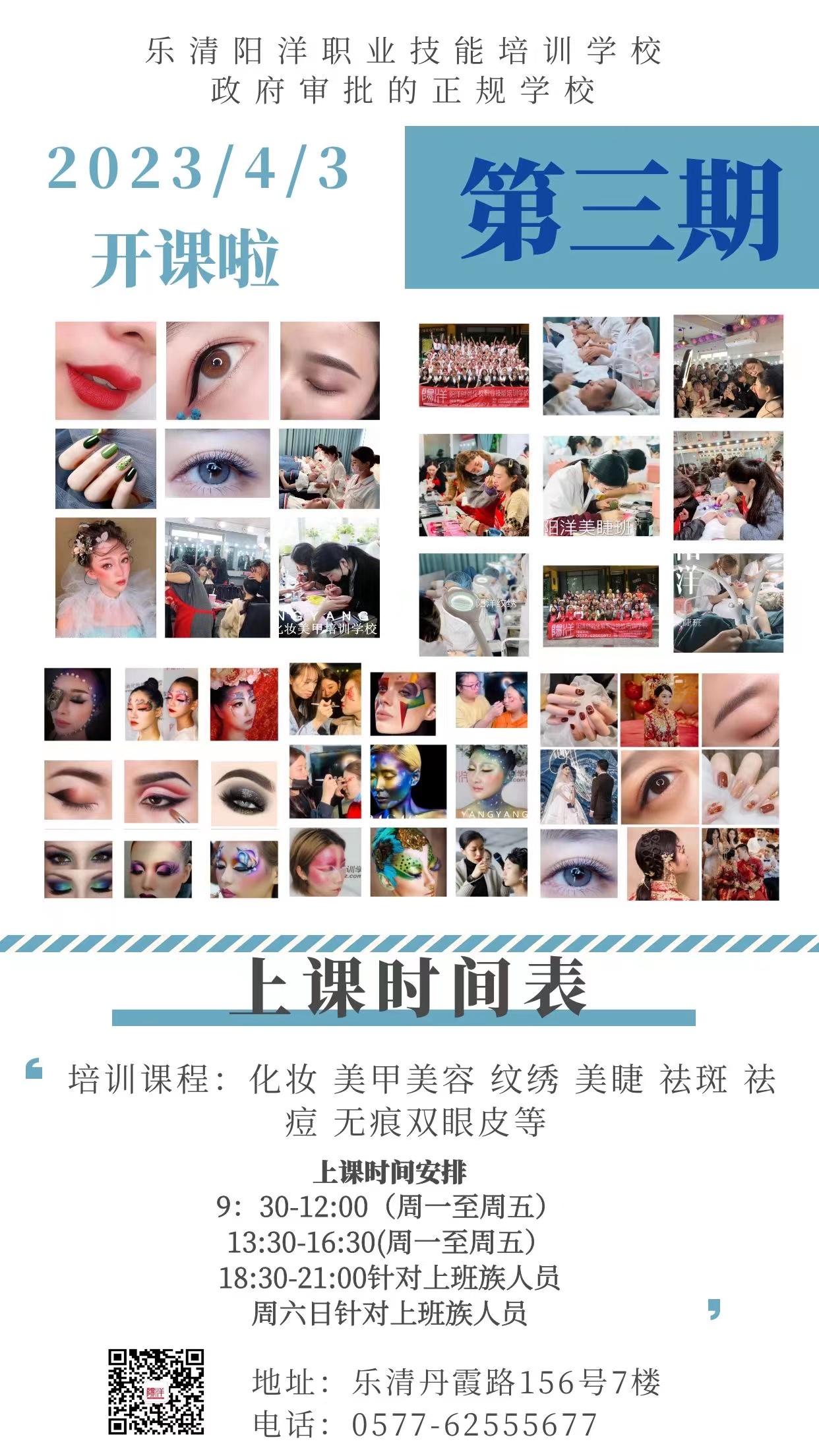 當前位置:樂清市陽洋職業技能培訓學校 » 學校新聞樂清哪里有學化妝?2023年4月所有課程開課時間表發布時間:2023-3-23 12:10:59 瀏覽次數:1963 |