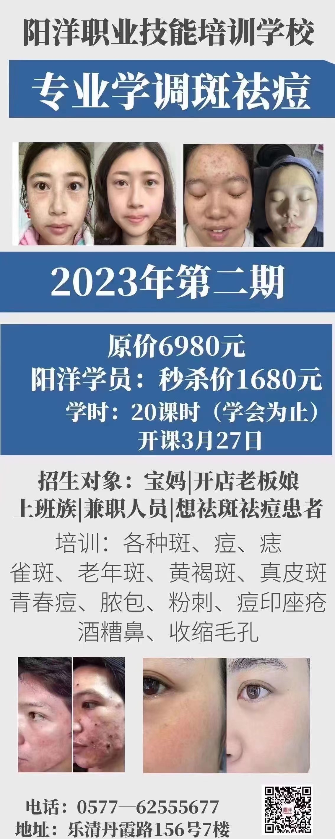 當(dāng)前位置:樂清市陽洋職業(yè)技能培訓(xùn)學(xué)校 » 學(xué)校新聞樂清哪里有學(xué)祛斑祛痘?樂清陽洋祛斑祛痘班開班啦發(fā)布時間:2023-3-23 12:13:57 瀏覽次數(shù):1952 |