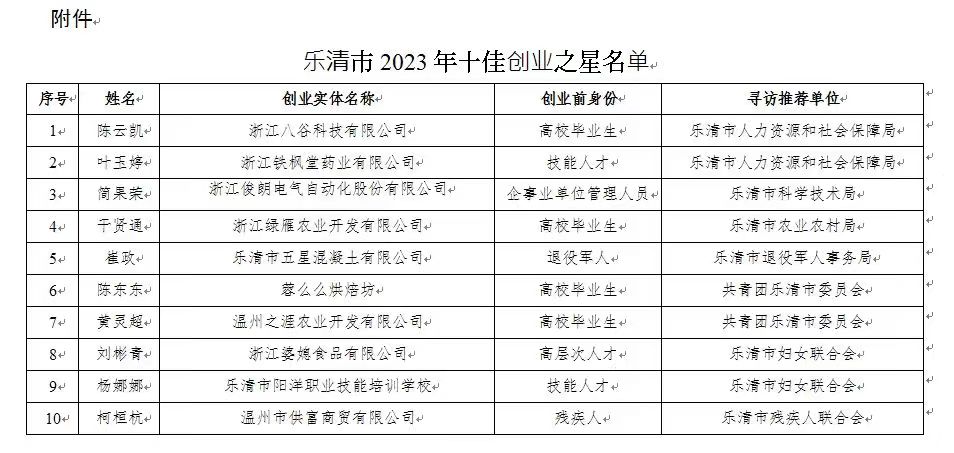 8月31日下午,在第一場“來樂清·創未來”樂清市2023年重點群體創業推進活動暨“我在樂清創未來”樂清市首屆青年創新創業對話會活動現場,10位優秀創業者來到現場參加頒獎儀式。現公布樂清市2023年十佳創業之星尋訪結果,以此肯定各位優秀創業者在創業帶動就業方面的顯著成效