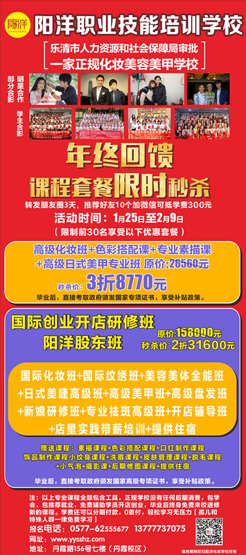 - 樂清陽洋化妝培訓(xùn)學(xué)校喊你來砸金啦!你還在等什么?