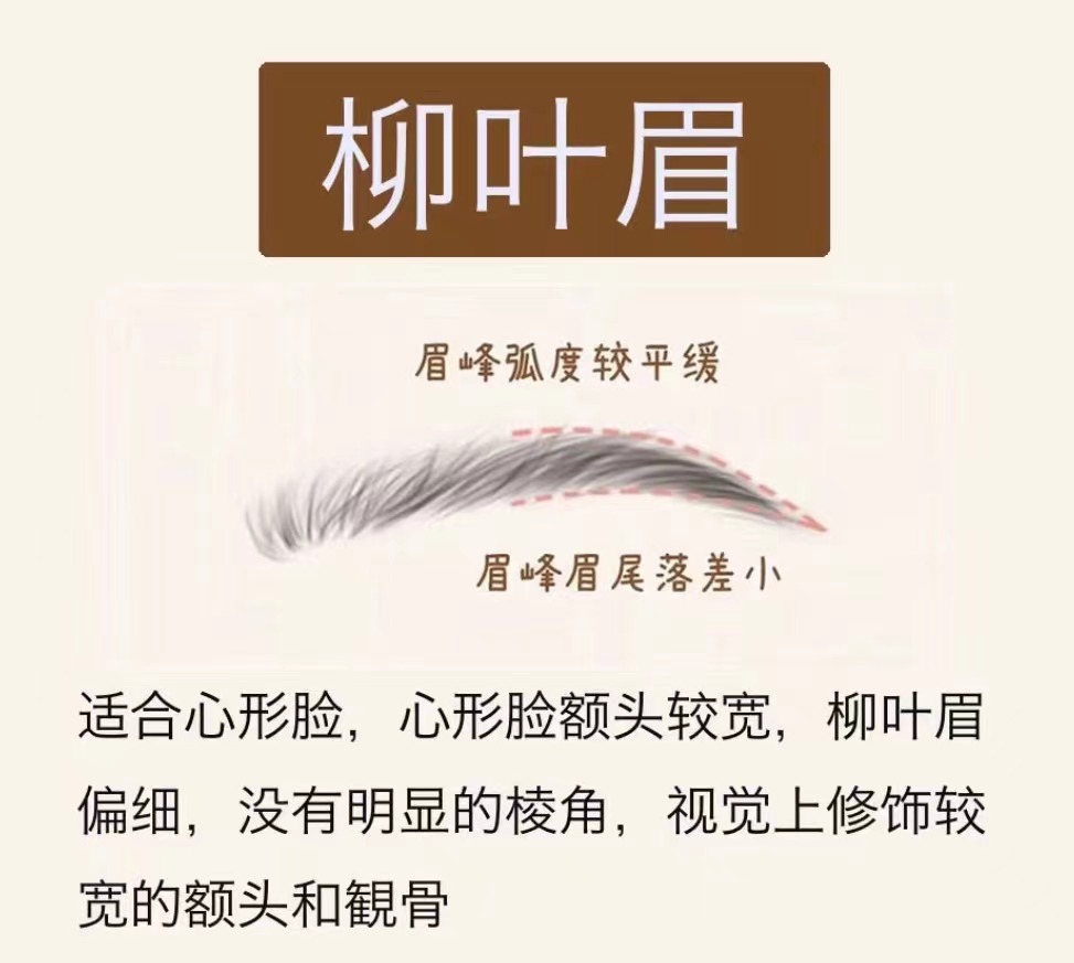 畫法技巧: 眉峰適當前移,視覺上修飾較寬的額頭,眉毛的弧度較為平緩柔和,眉毛可以細一些,減少上面部量感細長柳葉眉,景甜同款,古裝造型必備 ![]()