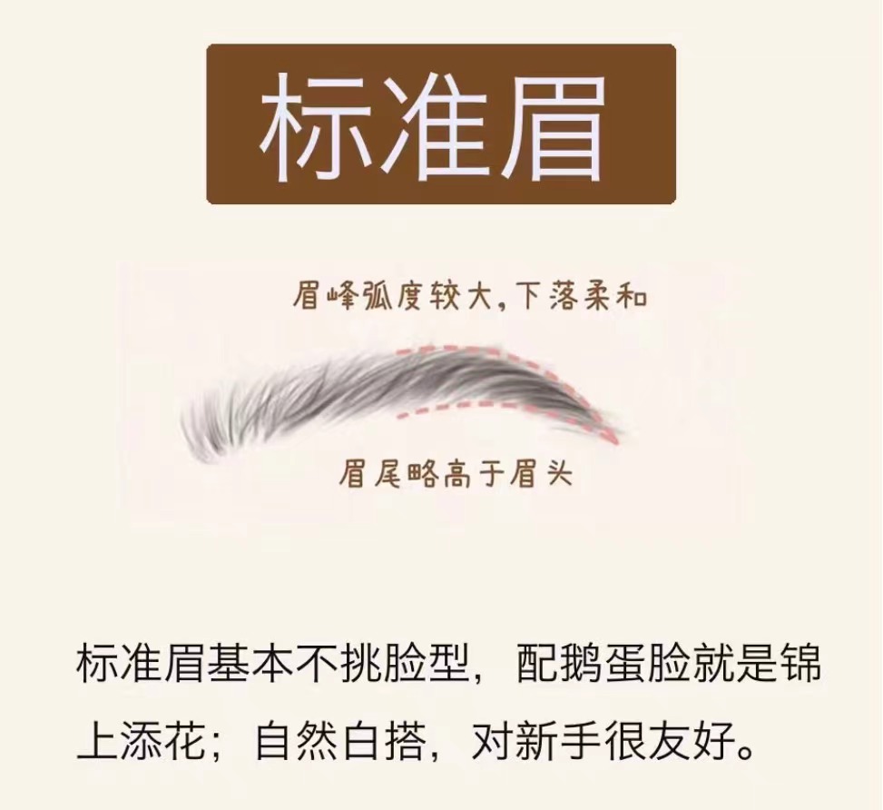 畫法技巧: 眉毛整體定點與標準眉比較接近 眉峰到眉尾自然向下,眉峰較為圓潤 眉毛整體線條柔和,粗細均勻,弧度適中 ![]()