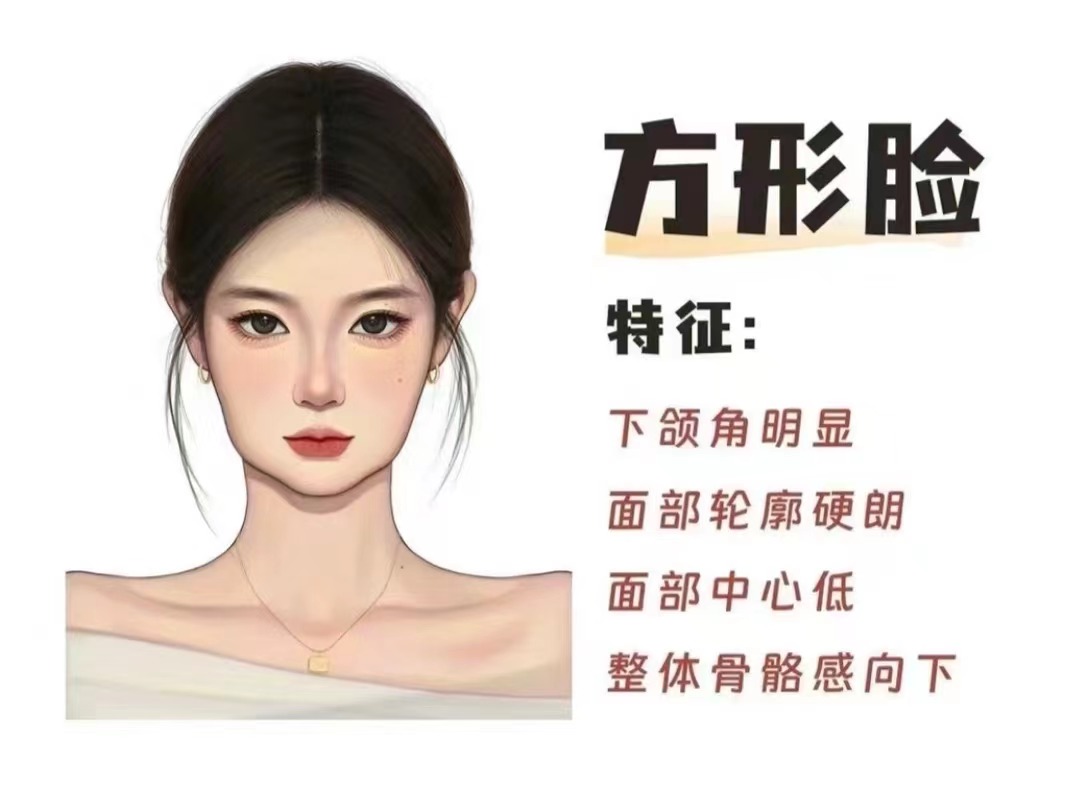 視覺印象:理論感、氣場感、氣質(zhì)、大方、高級感 整體造型建議:多采用一些色彩鮮艷的,服裝剪裁帶有利落感的衣服,整體氣質(zhì)高級。也可以去考慮帶點潮酷感的少嘗試少女類風格 臉型修飾:方臉需要在臉周大面積修容從太陽穴到下頜骨的部分都需要少量多次進行暈染,高光則掃在山根/眼下/下巴,視覺上拉長臉型 避免:可愛的、娃娃領(lǐng)、泡泡袖等元素設(shè)計服裝