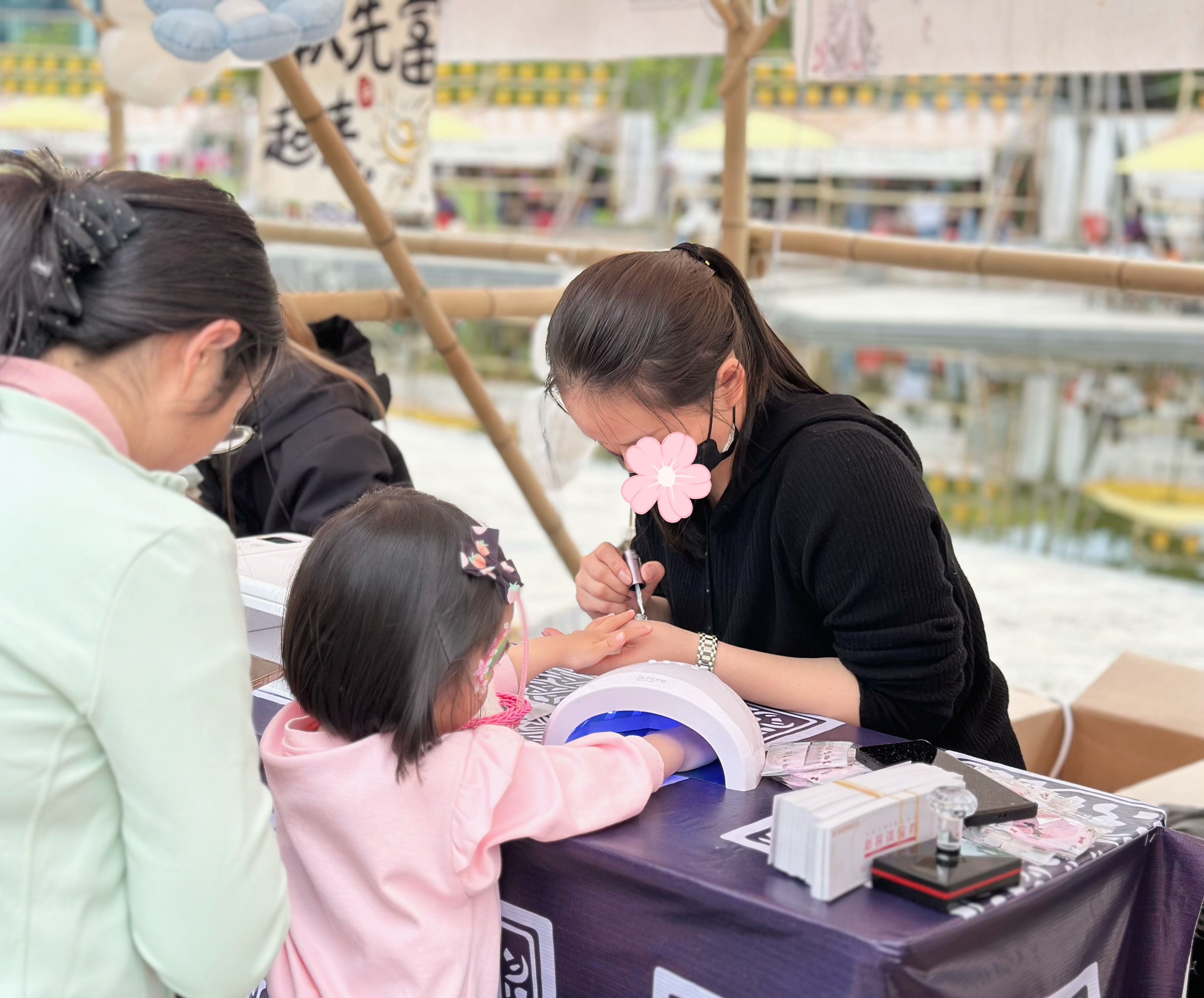 樂顏回坊是國潮和非遺集結的區域,樂清陽洋也在其中 前來做美甲的小姐姐絡繹不絕 甚至排起了長隊