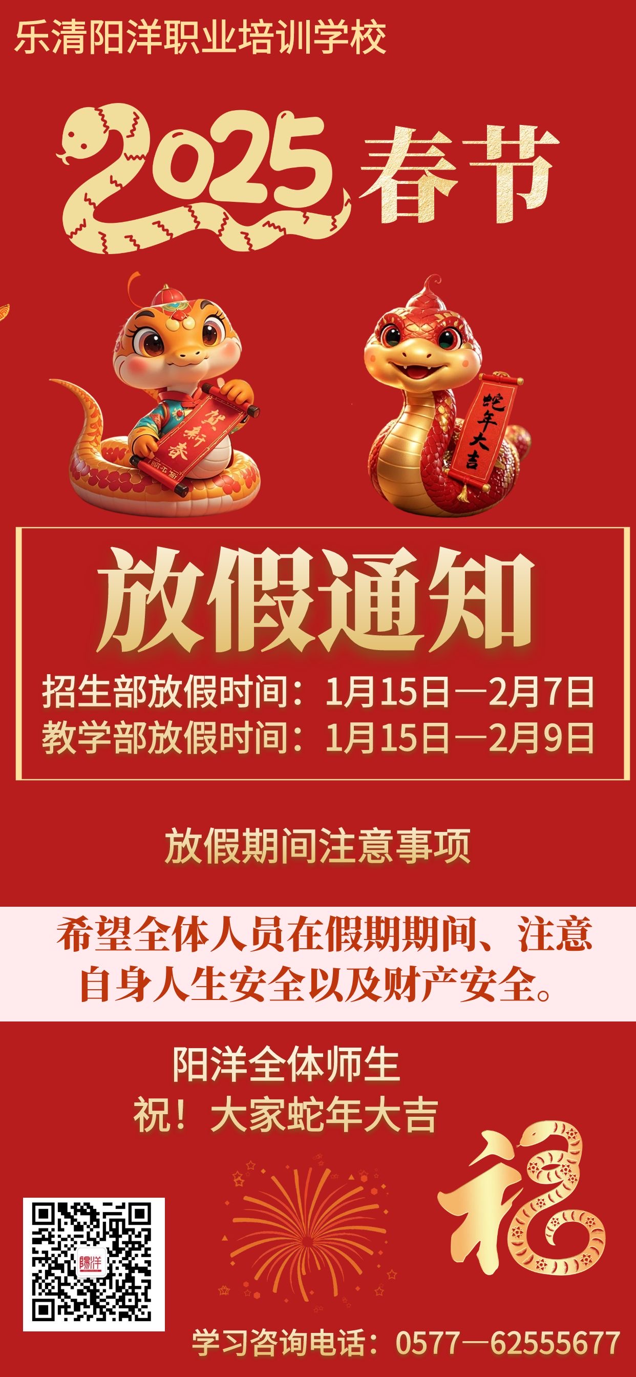 2025年陽洋春節放假時間安排|樂清哪里有學化妝|樂清哪里有學美甲發布時間:2025-1-13 11:07:30 瀏覽次數:1979 |