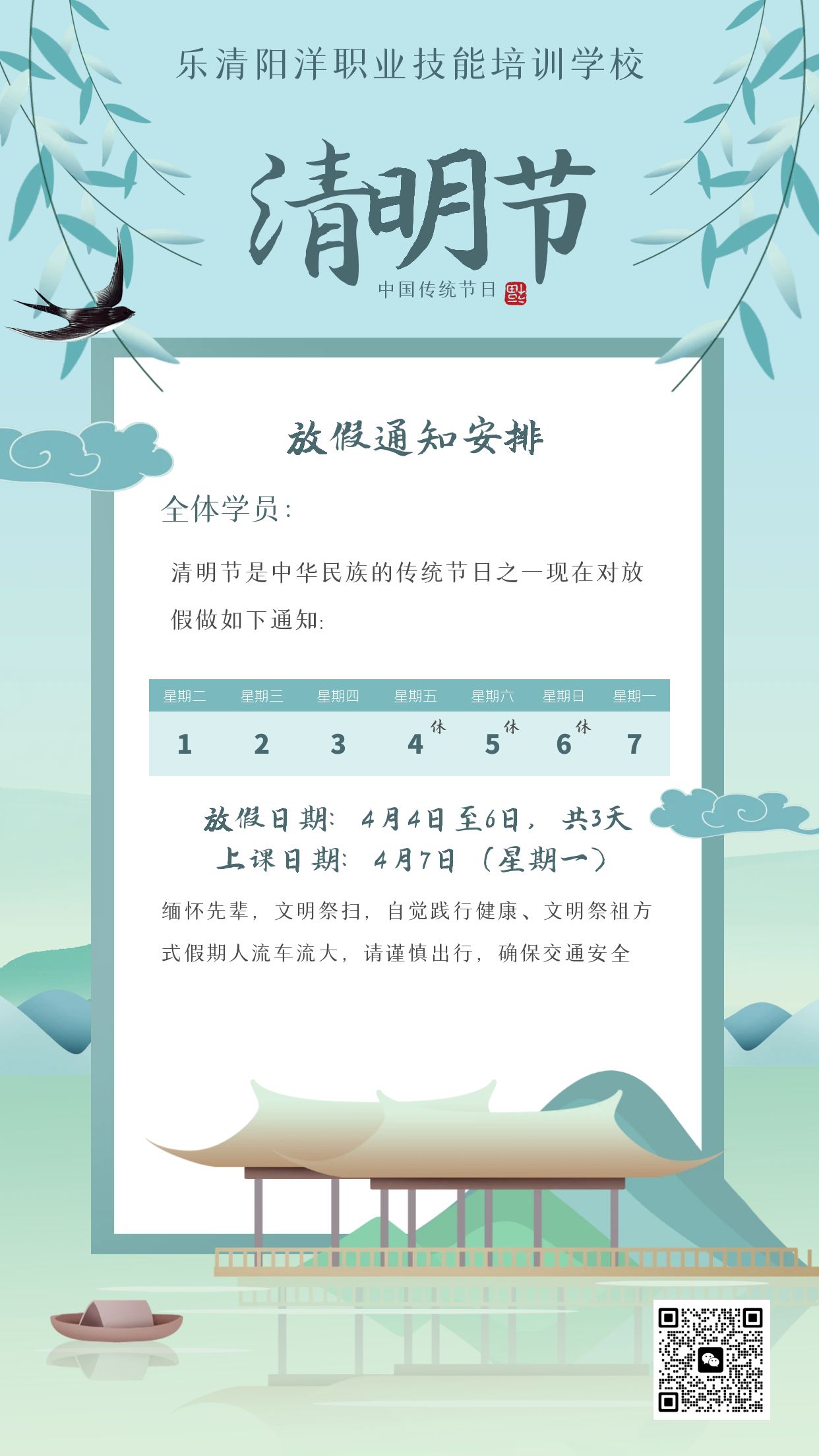 當(dāng)前位置:樂清市陽洋職業(yè)技能培訓(xùn)學(xué)校 » 學(xué)校新聞樂清陽洋清明放假通知—樂清哪里學(xué)化妝|樂清化妝學(xué)校|樂清美甲學(xué)校發(fā)布時(shí)間:2025-4-3 13:03:27 瀏覽次數(shù):1989 |
