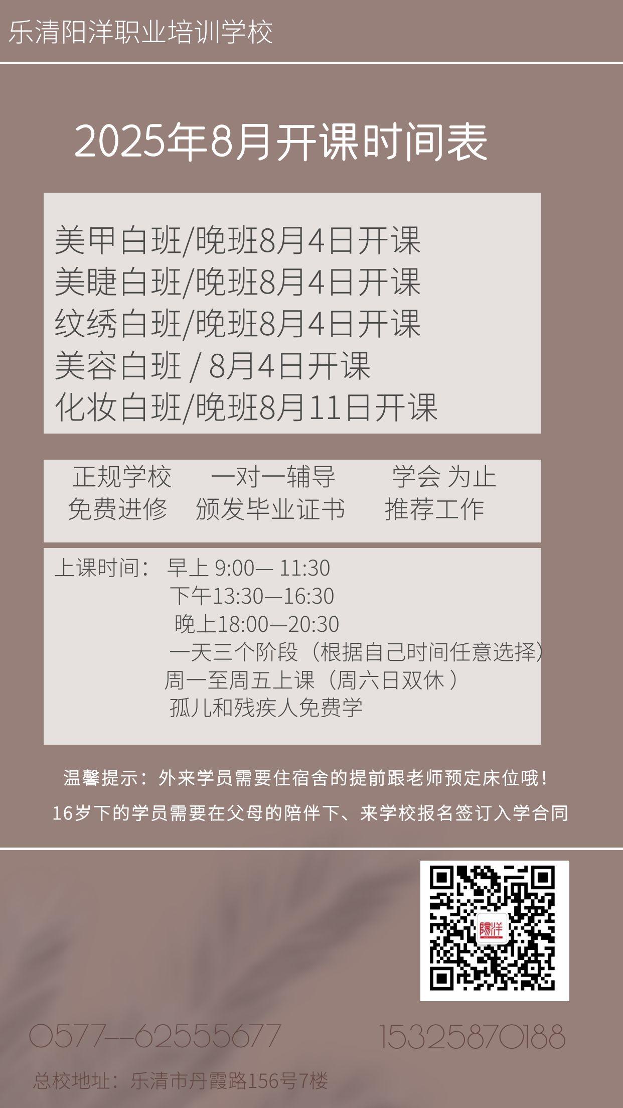 當前位置:樂清市陽洋職業技能培訓學校 » 學校新聞2025年8月開課時間表|樂清哪里有學化妝|柳市哪里有學化妝|虹橋哪里有學化妝|發布時間:2025-7-26 17:57:53 瀏覽次數:2000 |