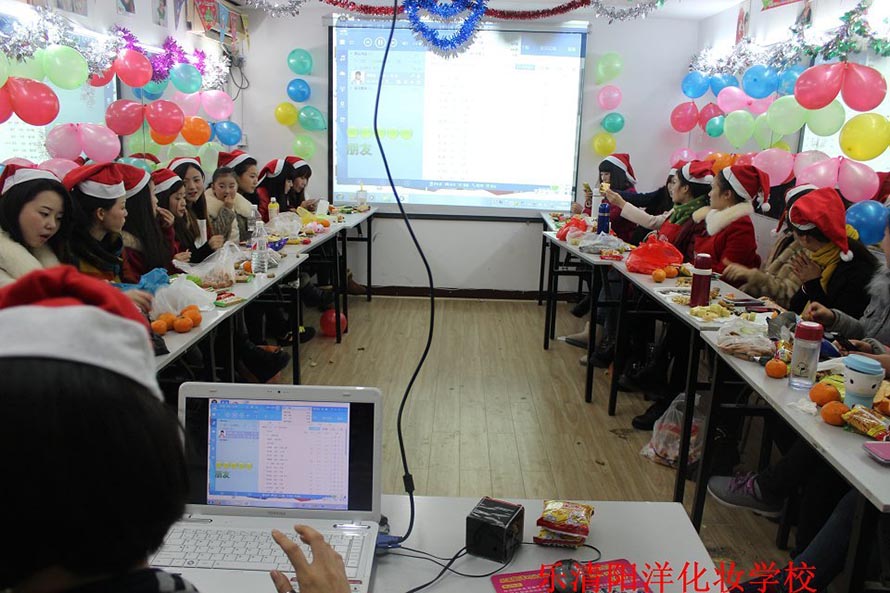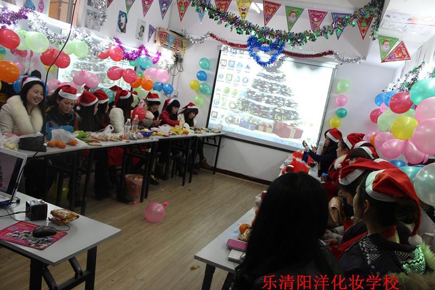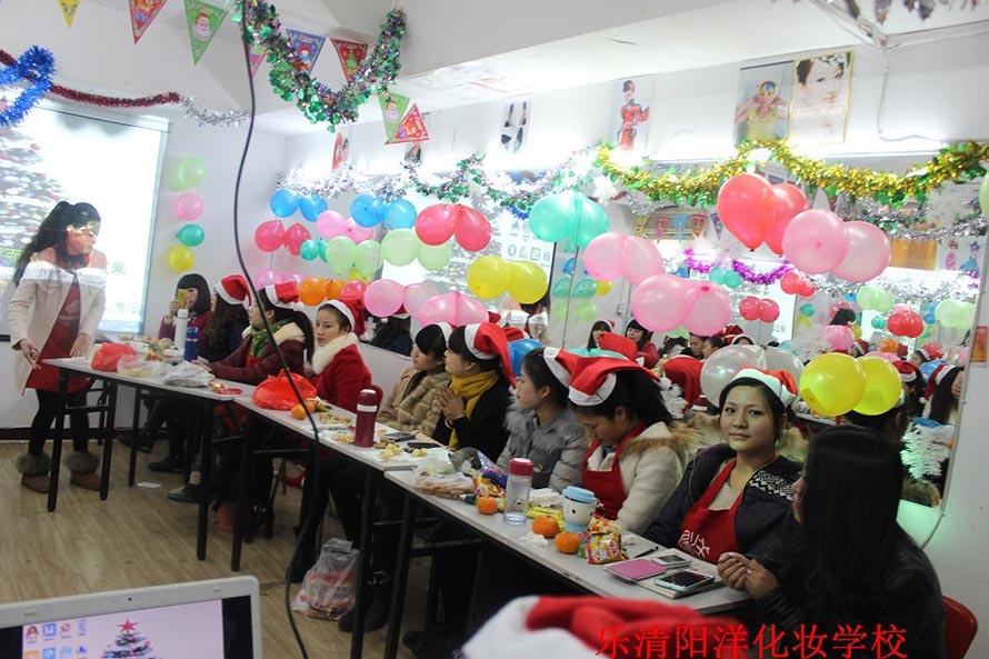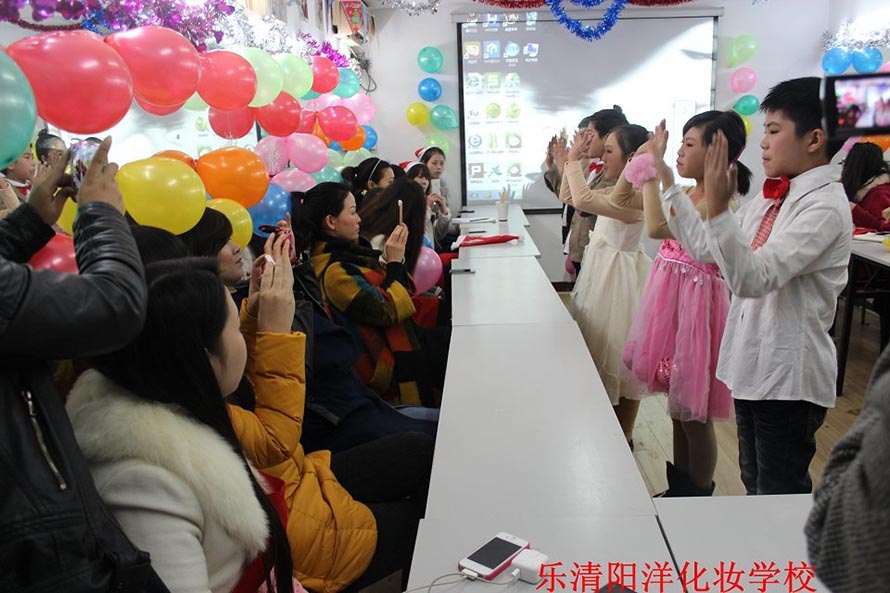 昨天的圣誕節氣氛很好,學校很多學生都都回老家了,原因是因為很多都是外地的,都提早回家了,這是小班部分學生跟老師一起簡單的設計了下布置,那幾天大家都在外面實習,也沒有過多的時間來布置。 雖然很簡單,但是大家都樂個不停,一直嘻嘻哈哈太開心啦!!!!她們平時學習很用功,出去實習經常客人表演化的好,所以在圣誕節這天大家都放松心情的玩,很難忘的一個簡單圣誕節派對,l老師們開心,同學們開心!還有樂清二小的小朋友們來給合唱了一首明天會更好呢!謝謝這些可愛的小朋友們。 祝福陽洋時尚化妝培訓學校的老師們!同學們大家明天都會更好!現在來看看精彩花絮的一些照片吧!