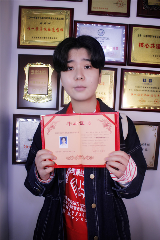 記得楊洋老師說過我們現(xiàn)在都是“工”,大家要努力堅持才能成為“匠”,剛來樂清陽洋化妝學(xué)校的時候?qū)瘖y只是一知半解,現(xiàn)在從第一個月的基礎(chǔ)知識到第四個月的奇思妙想,已經(jīng)讓我對化妝有了深入的了解。