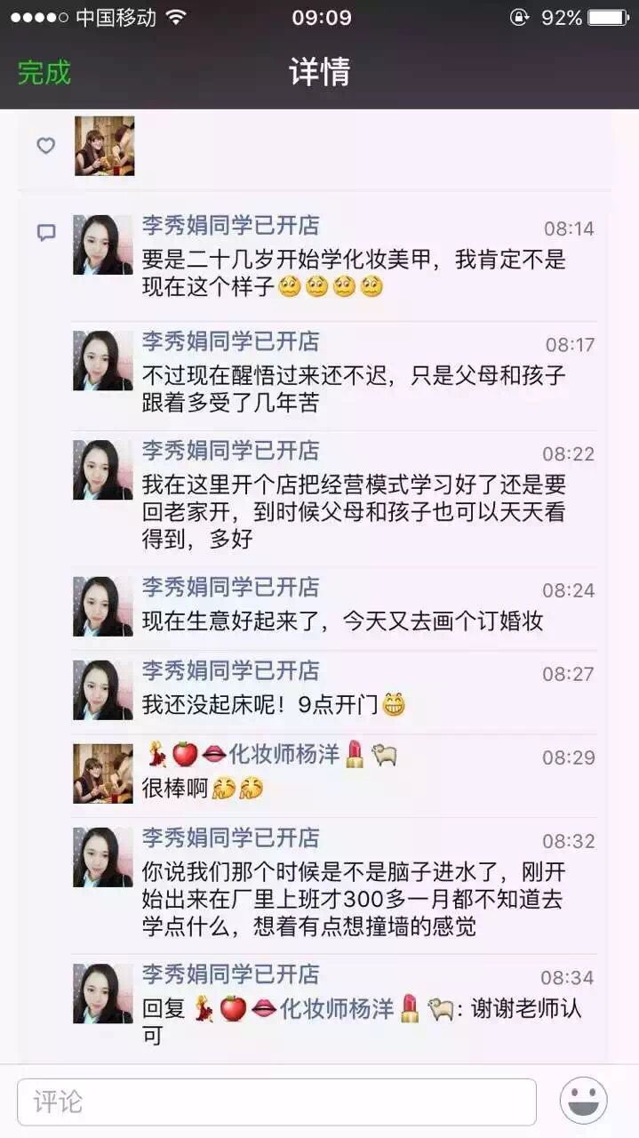 樂清化妝品店成功學員——柴丹丹 2015年在樂清陽洋化妝學校學習化妝, 美甲,紋繡課程 現在已擁有兩家自己的化妝品店面