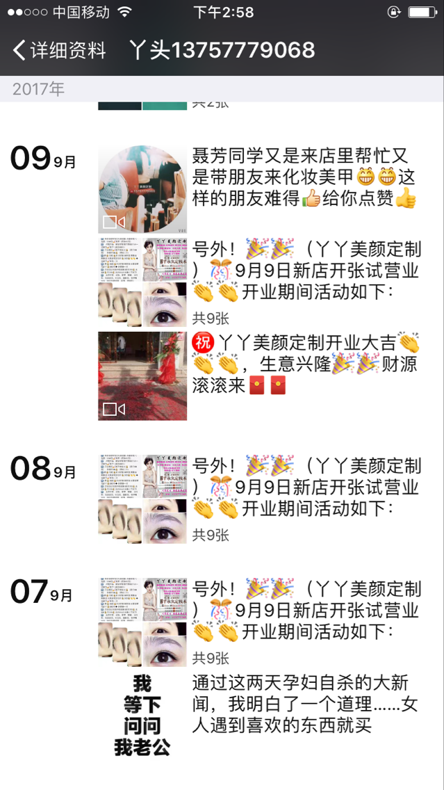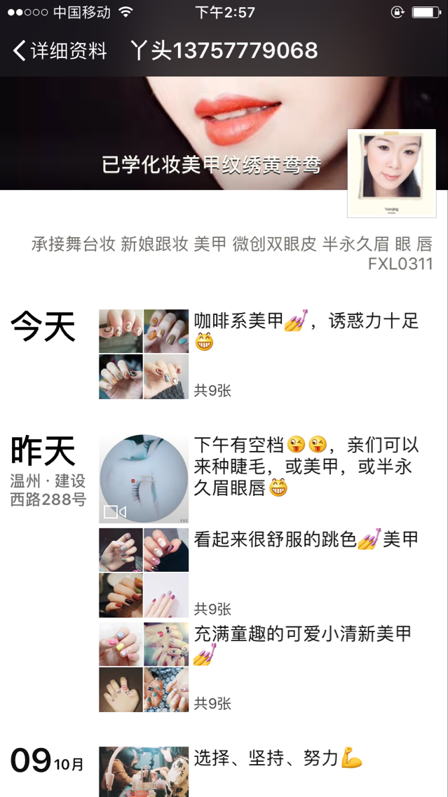 這是我自己的小店:丫丫美顏定制“ 我很喜歡這所學校,喜歡學校里的每一個女孩子,因為在他們身上我看見了一個現代女性愛學習,渴望知識,不斷拼搏向上的精神,值得我敬佩的不屈的朝氣蓬勃的生命,在日常學校的課堂中,陳老師認真負責的教學態度讓我受益匪淺,從一開始講解紋繡理論的知識,再到老師手把手的教我們在練習皮上操作,如何設計適合客戶的眉型,眉眼唇色乳的調配等等。 我求知若渴也常常向老師討教不懂的問題,老師都很耐心的回答,以后的成長路中還有許許多多讓老師指點的地方,還麻煩老師不吝賜教。 畢業之際。屬于我自己的“丫丫美顏定制”開業啦! 里面經營:化妝,美甲,紋繡,,私人訂制,歡迎你們前來光顧哦!現在開業期間還有充值優惠哦!