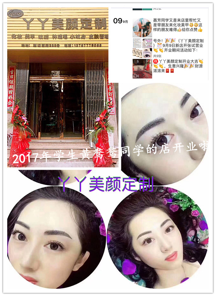 2017年我們培養(yǎng)了一千多名化妝師,給她們在溫州地區(qū)提供了就業(yè)機會,還幫助三百多位學生開店成功,教授如何營銷和如何運營店面。