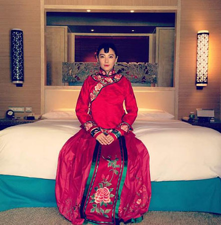 張雨綺在中式婚禮上以上《白鹿原》中田小娥的造型出場,兩人因《白鹿原》相識相愛并結為夫妻,此舉動也可能為紀念兩人的愛情。 張雨綺俏皮甜美的中式盤發并身著中式秀禾服,傳統的中國紅面料,精致的刺繡,真真兒的一位中國新娘子。 Angelababy