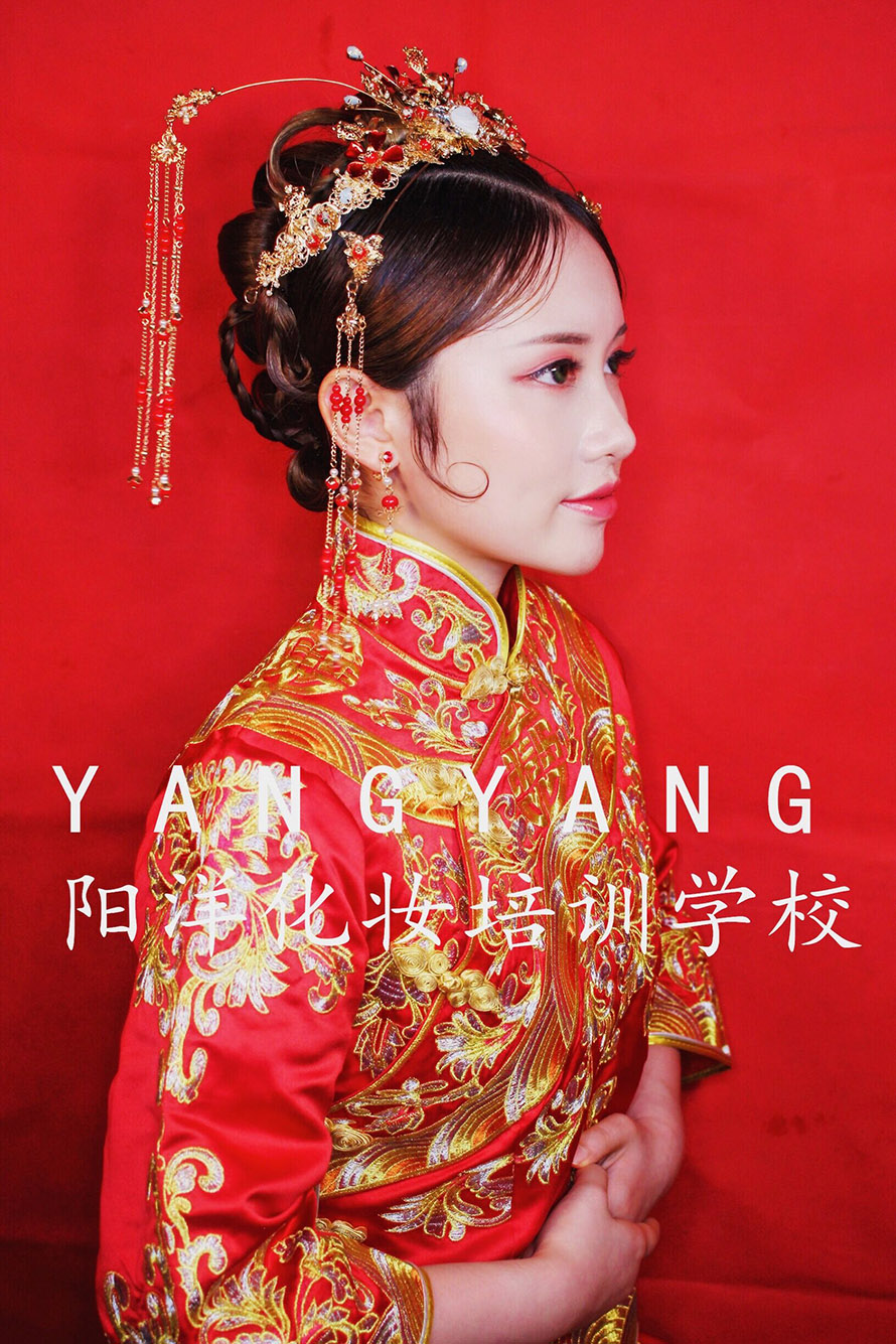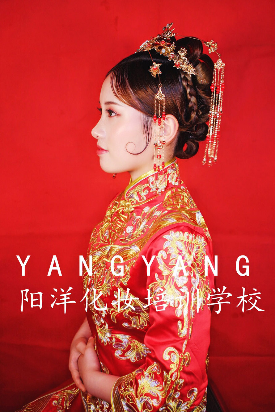 除了有一襲精美的秀禾服或者龍鳳褂,發型的搭配也是相當重要。以上明星款可做參照,陽洋學校下面這組造型也可以借鑒。