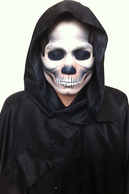 所謂骷髏妝,就是要求將臉部用油彩畫成骷髏的形狀。畫這種妝需要對人的骨骼結構有足夠的認識,所以被稱為影視妝容的基礎課程.是成為優秀化妝師的必修課。