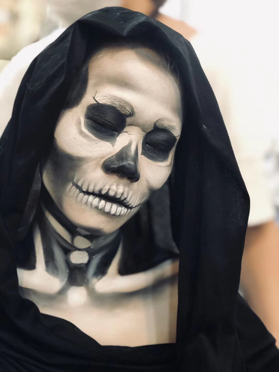 骷髏妝常用于萬圣節,小型變裝聚會,影視拍攝,還有雜志特效拍攝等。