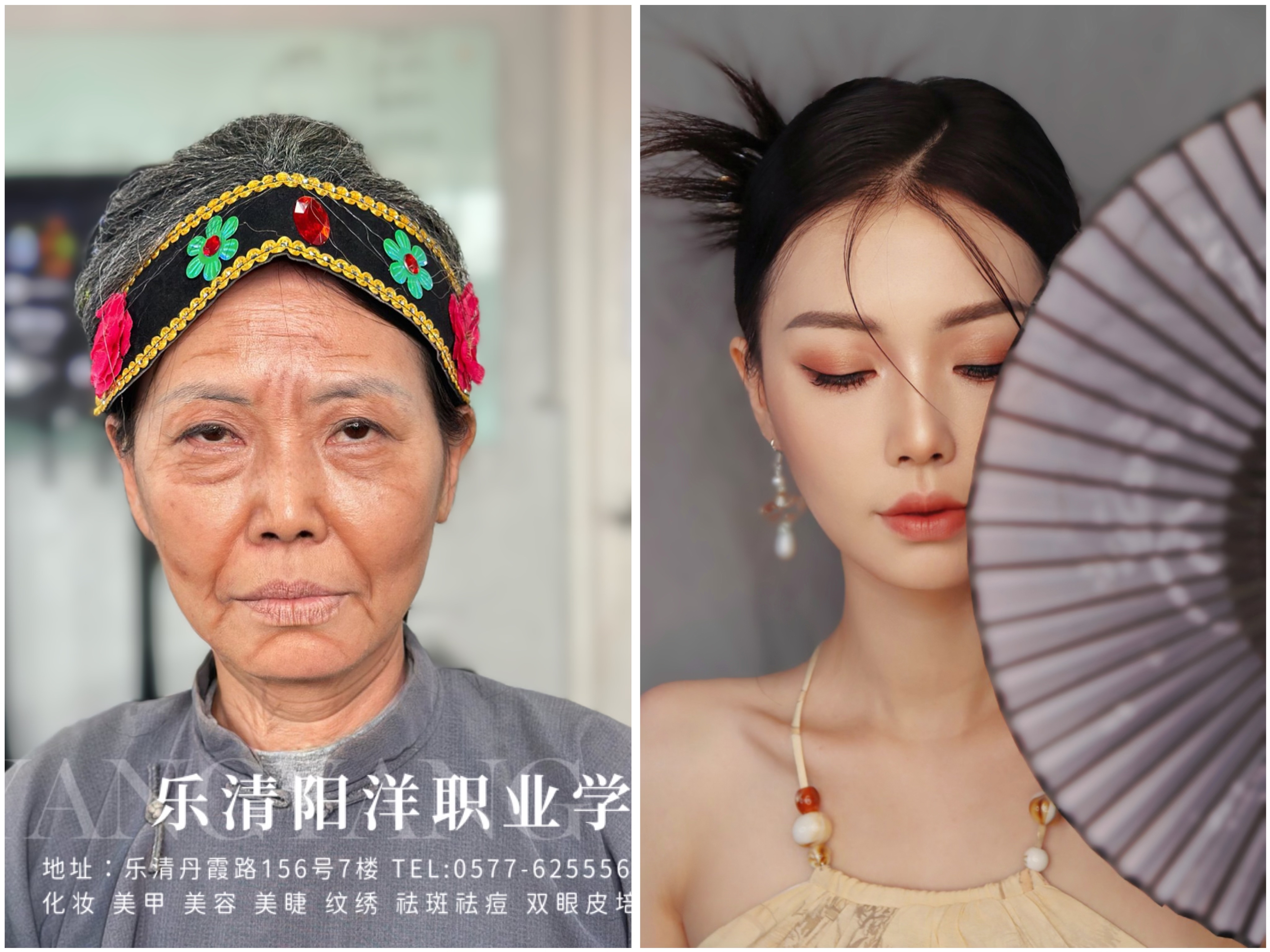 20歲來自樂清的學員老年妝的自己和旗袍妝的自己對比