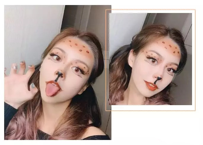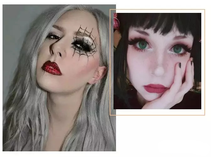 還有這種局部自由發揮 比較有特色的創意妝容 左邊有蝙蝠元素,右邊的雀斑元素 都很有特點,美